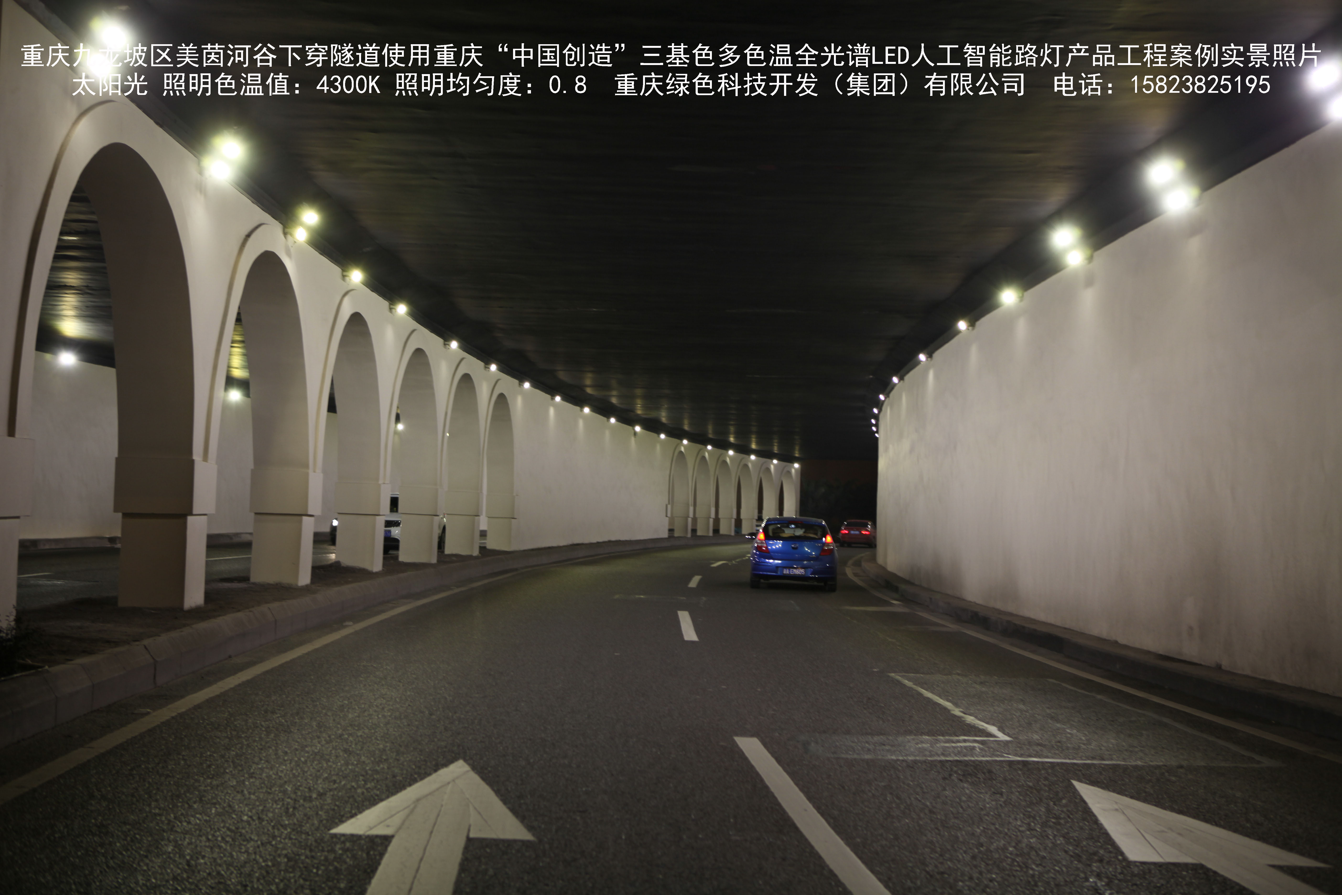 2018年9月,重慶市九龍坡區(qū)城市管理局使用我司自主研發(fā)制造的重慶“中國(guó)創(chuàng)造”三基色多色溫全光譜LED人工智能隧道燈系列產(chǎn)品,實(shí)施了美茵河谷下穿隧道市政設(shè)施品質(zhì)提升工程。該工程已全面竣工。工程實(shí)施后,極大地提高了城市照明清晰度、燈光均勻度、舒適度。通過(guò)智能終端實(shí)現(xiàn)單燈感知、線纜防盜報(bào)警,與原高壓鈉燈相比,節(jié)能率60%以上,有效解決了關(guān)閉控制回路或間隔關(guān)燈方式造成的照明暗區(qū),確保行人和車輛通行的安全,實(shí)現(xiàn)城市路燈照明系統(tǒng)的智能化管理,推進(jìn)了智慧城市建設(shè)。