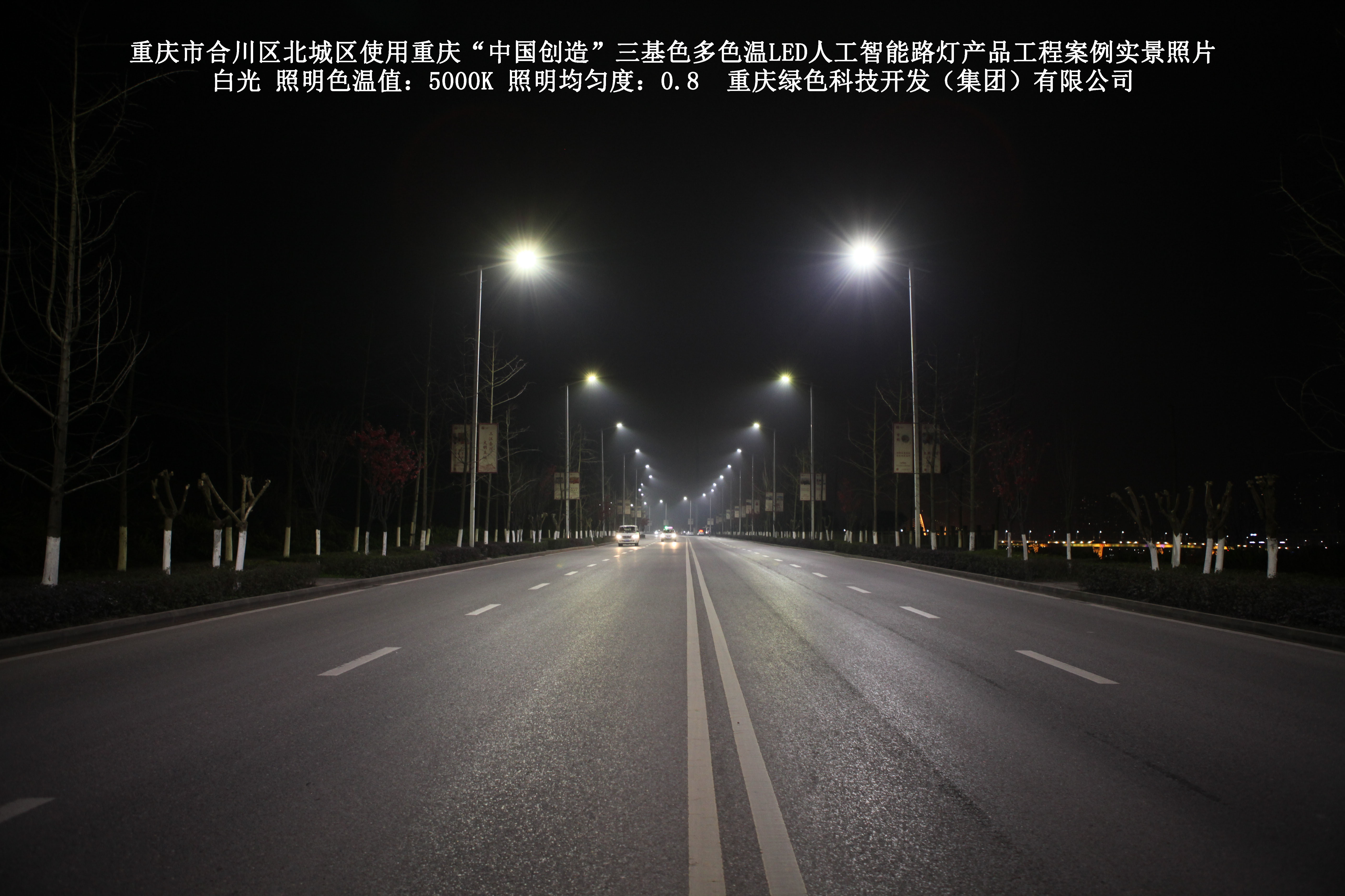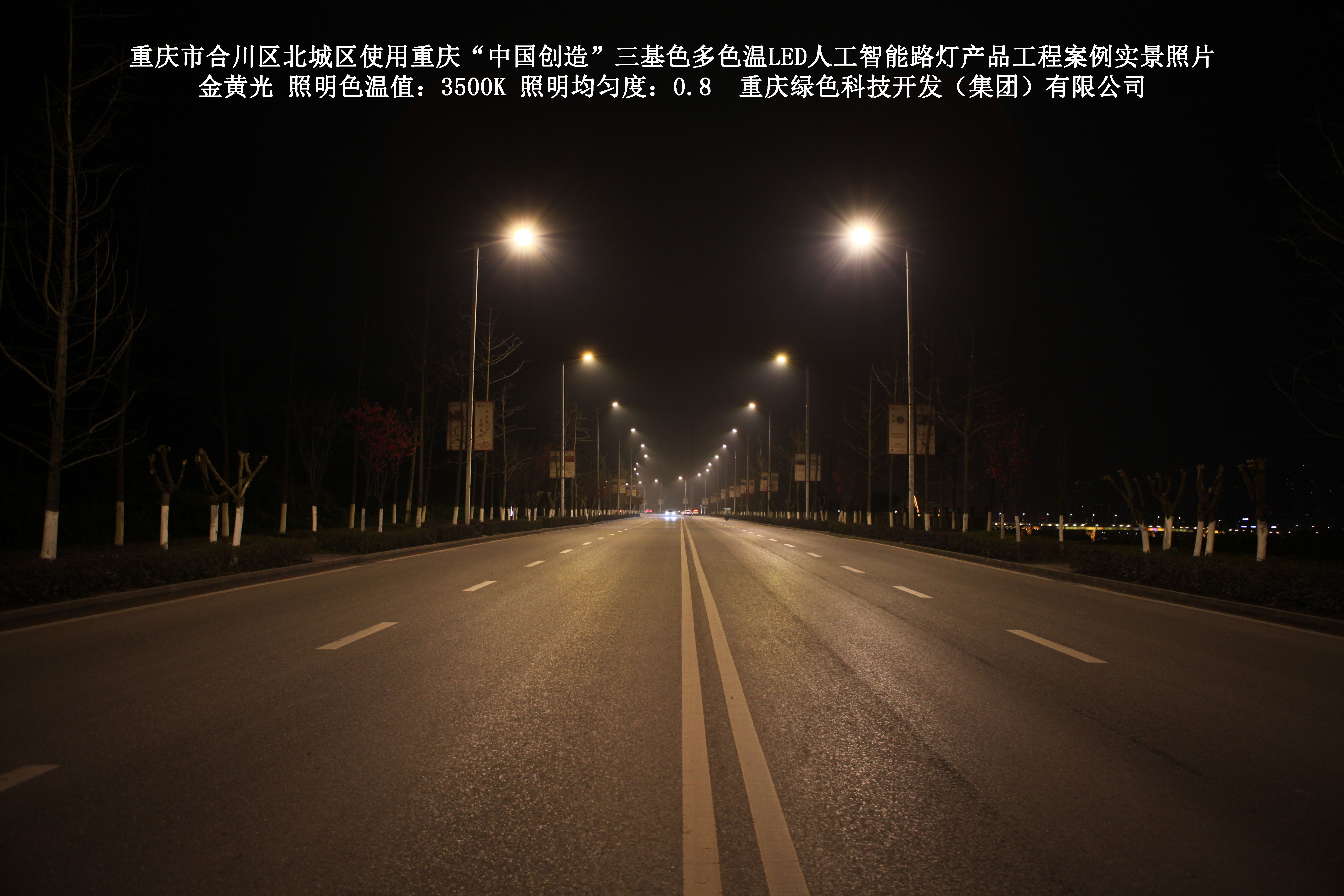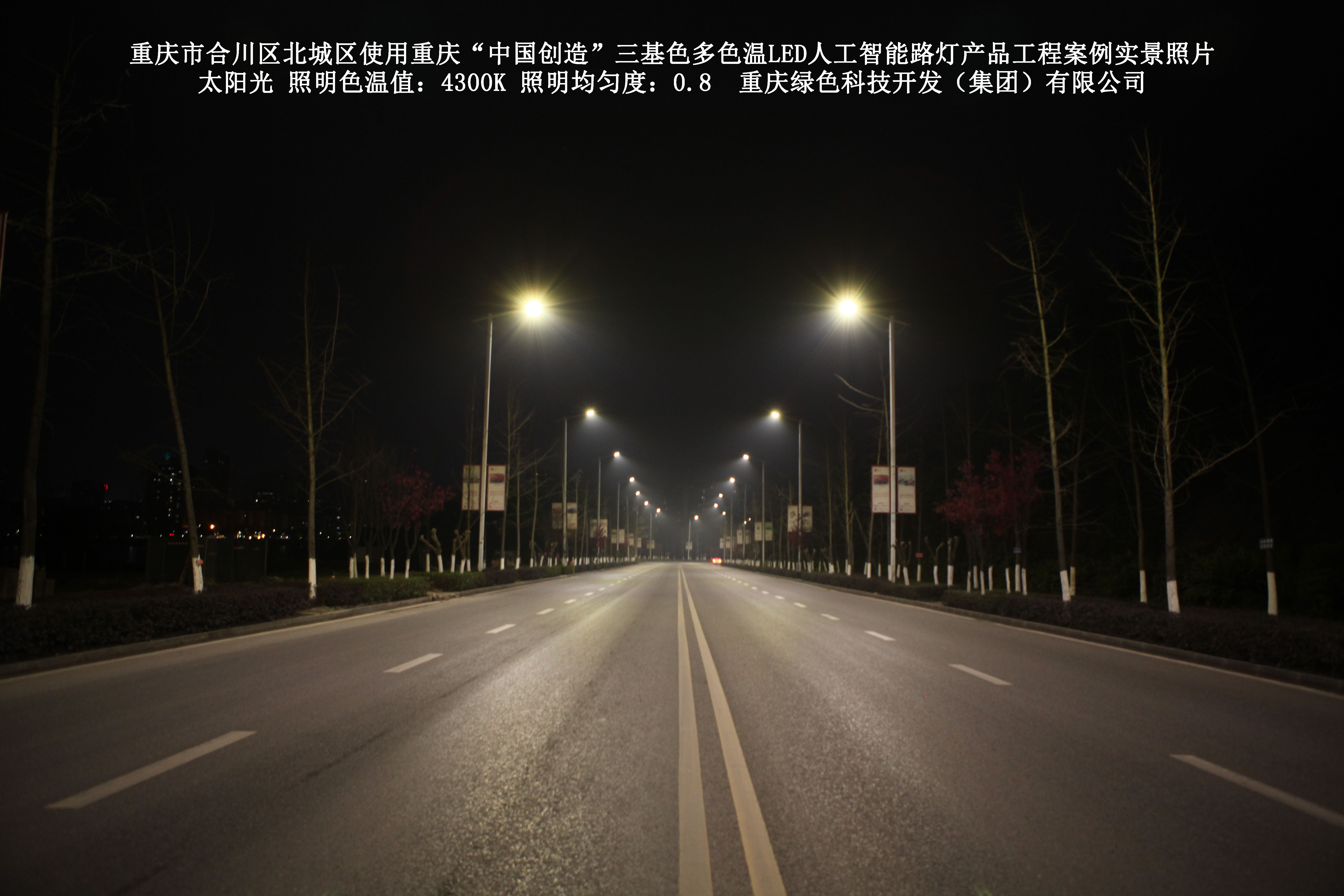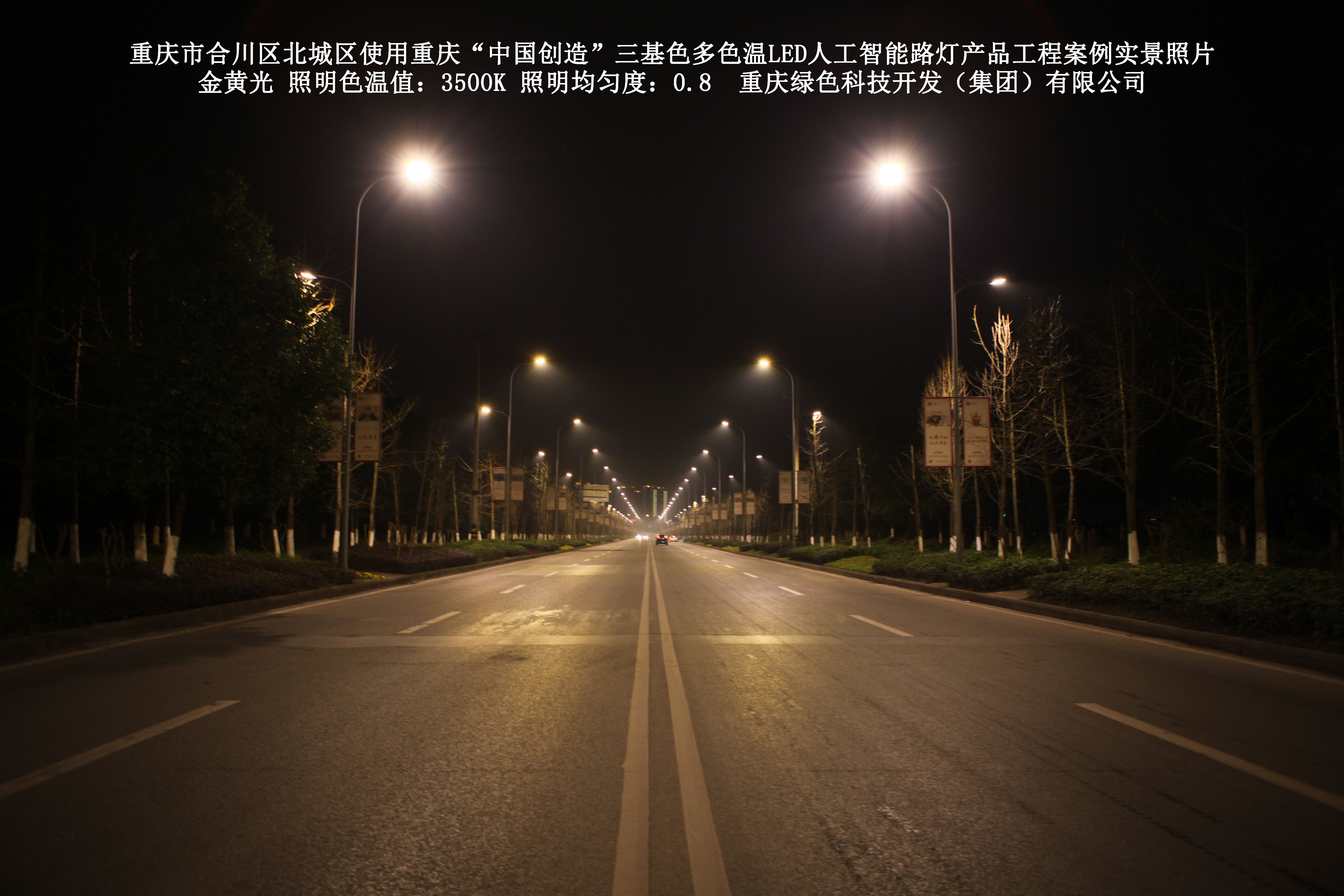 重慶市合川北城區(qū)使用我司研造的重慶“中國創(chuàng)造”三基色多色溫 LED人工智能路燈產(chǎn)品工程案例