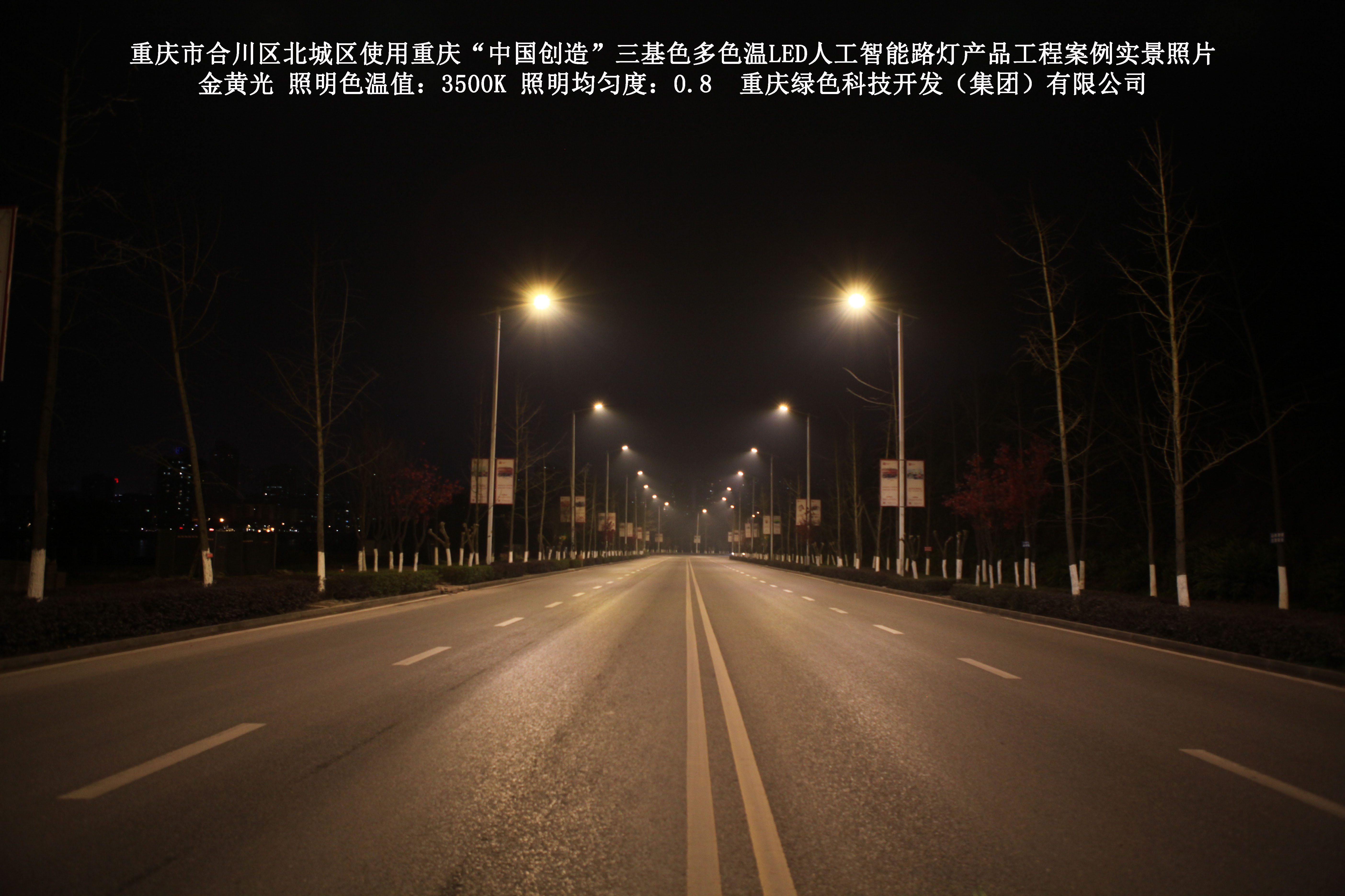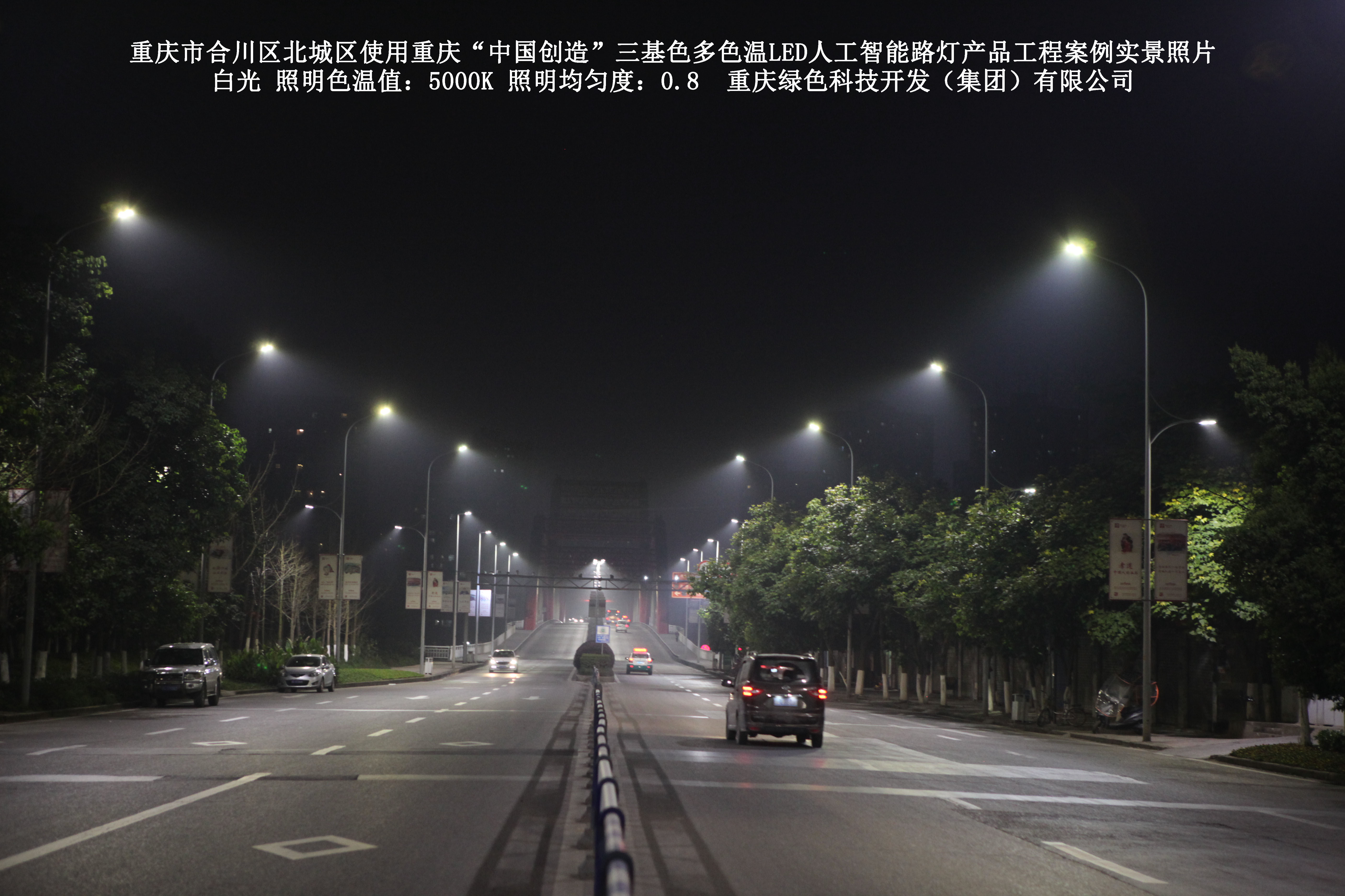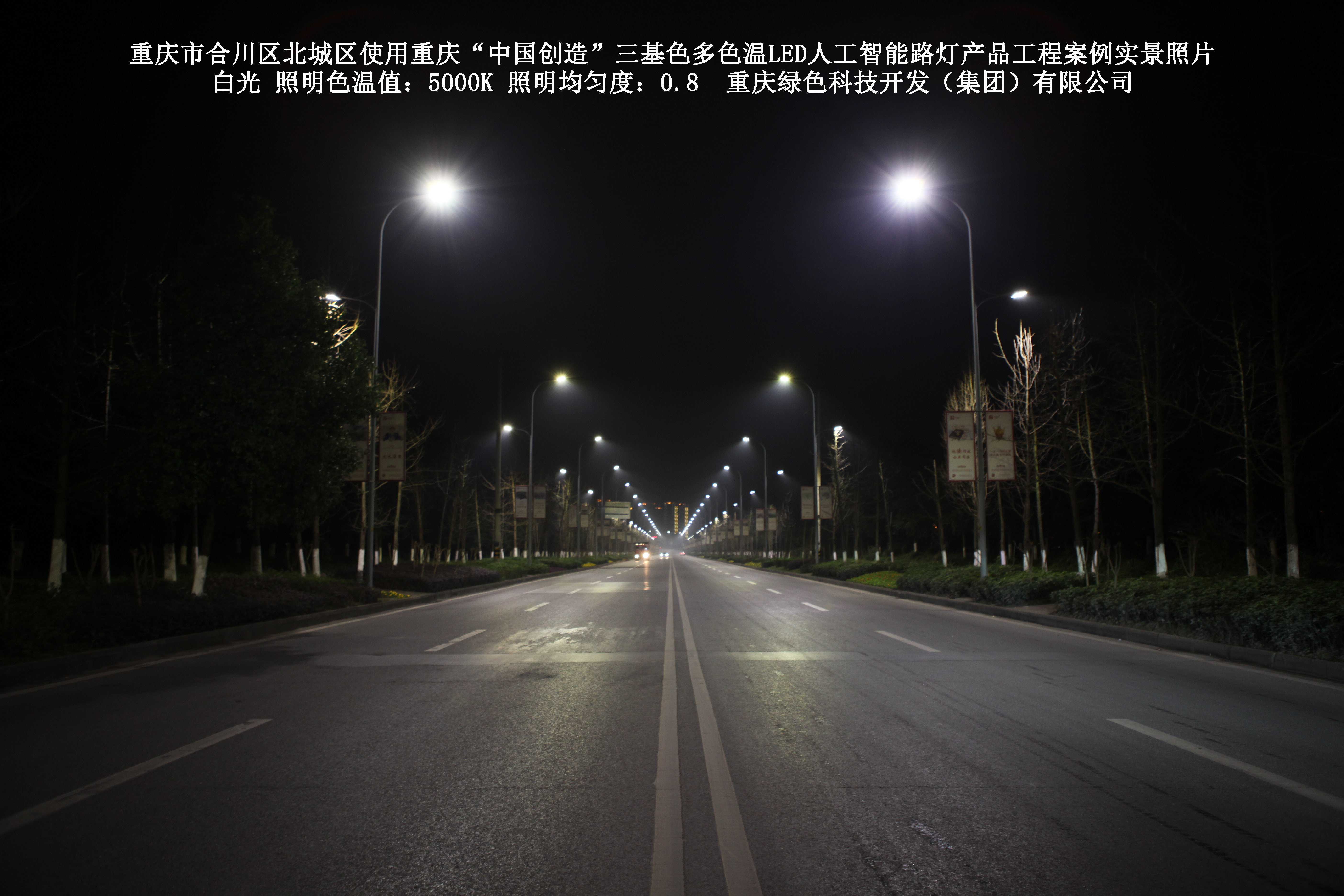 重慶市合川北城區(qū)使用我司研造的重慶“中國創(chuàng)造”三基色多色溫 LED人工智能路燈產(chǎn)品工程案例
