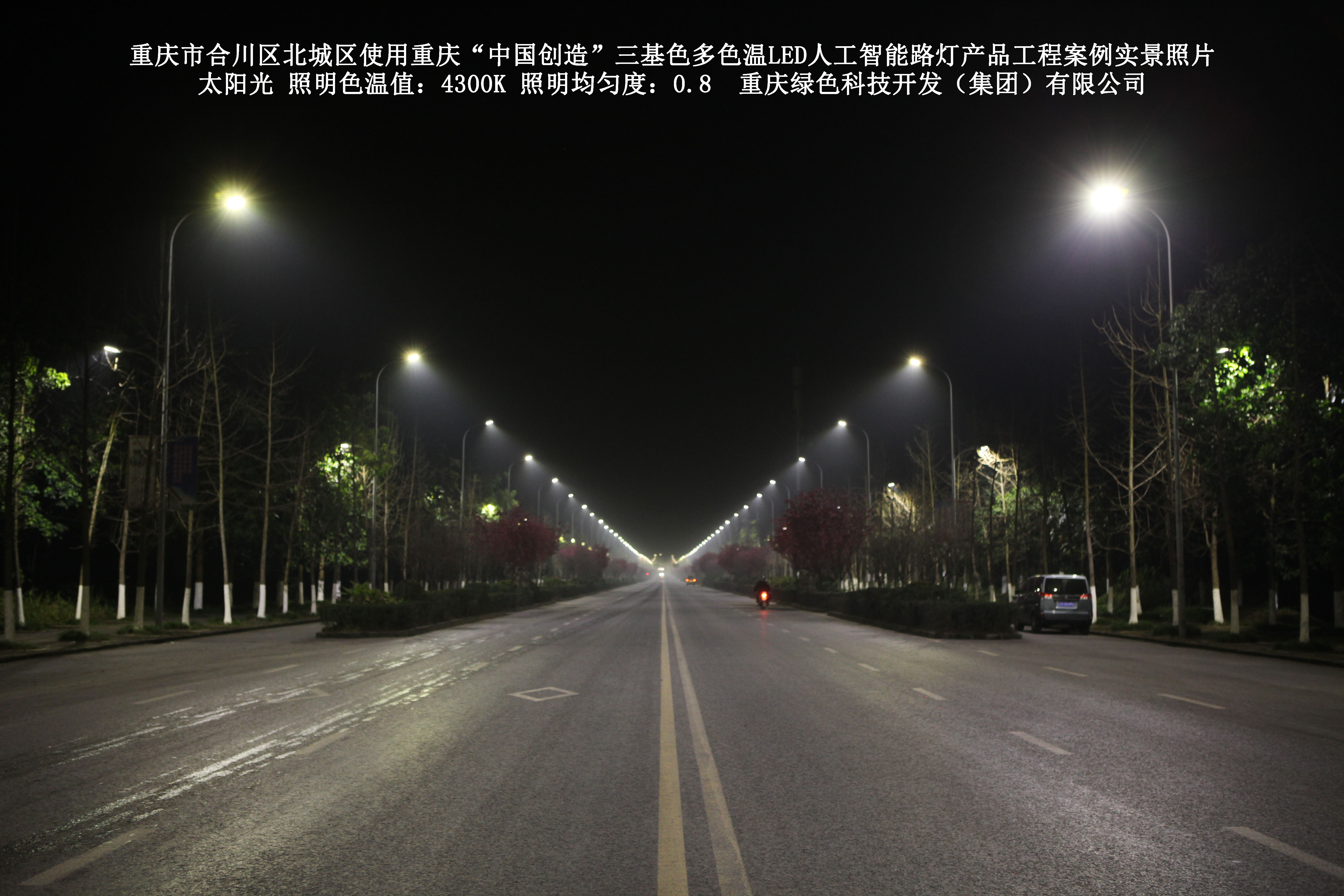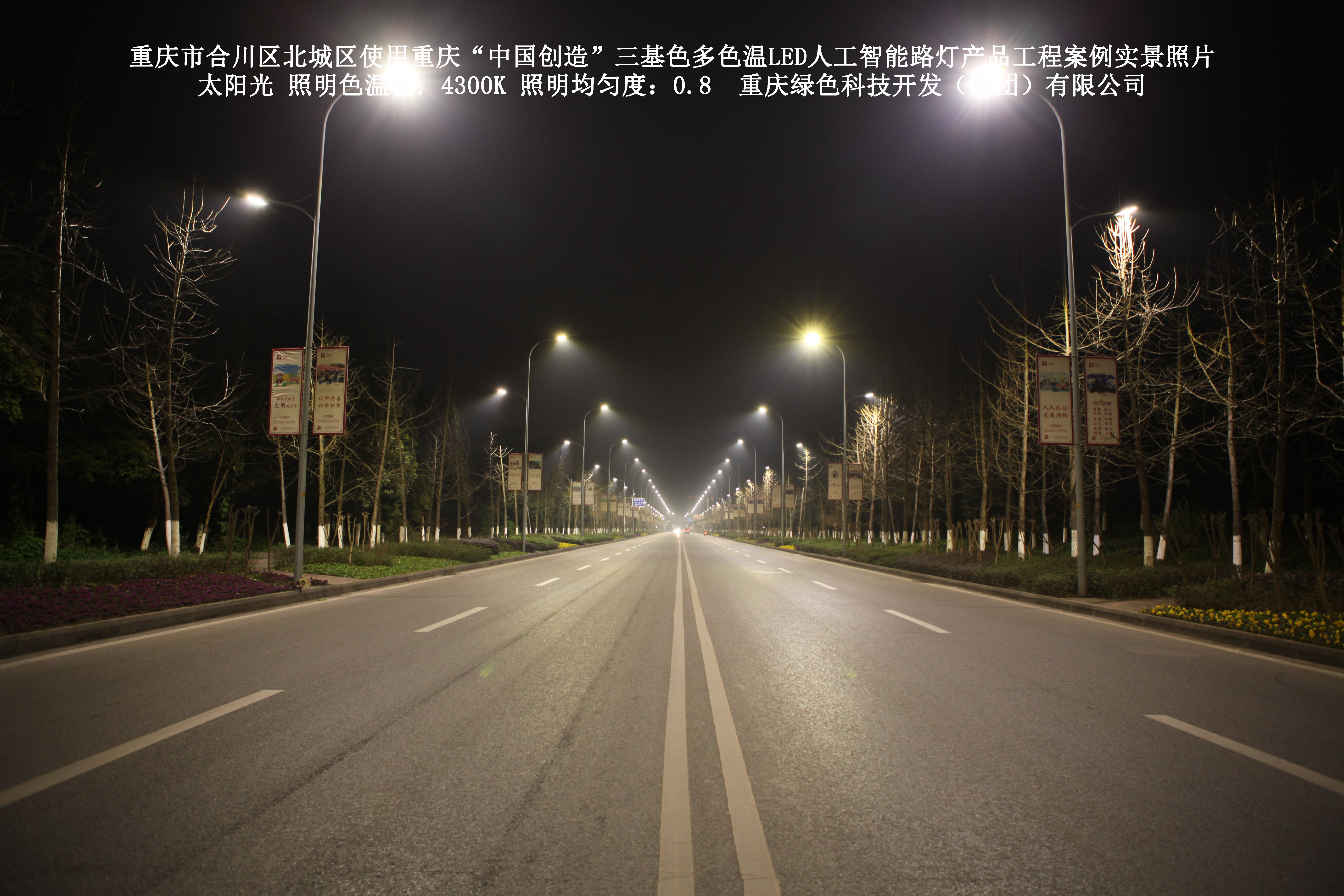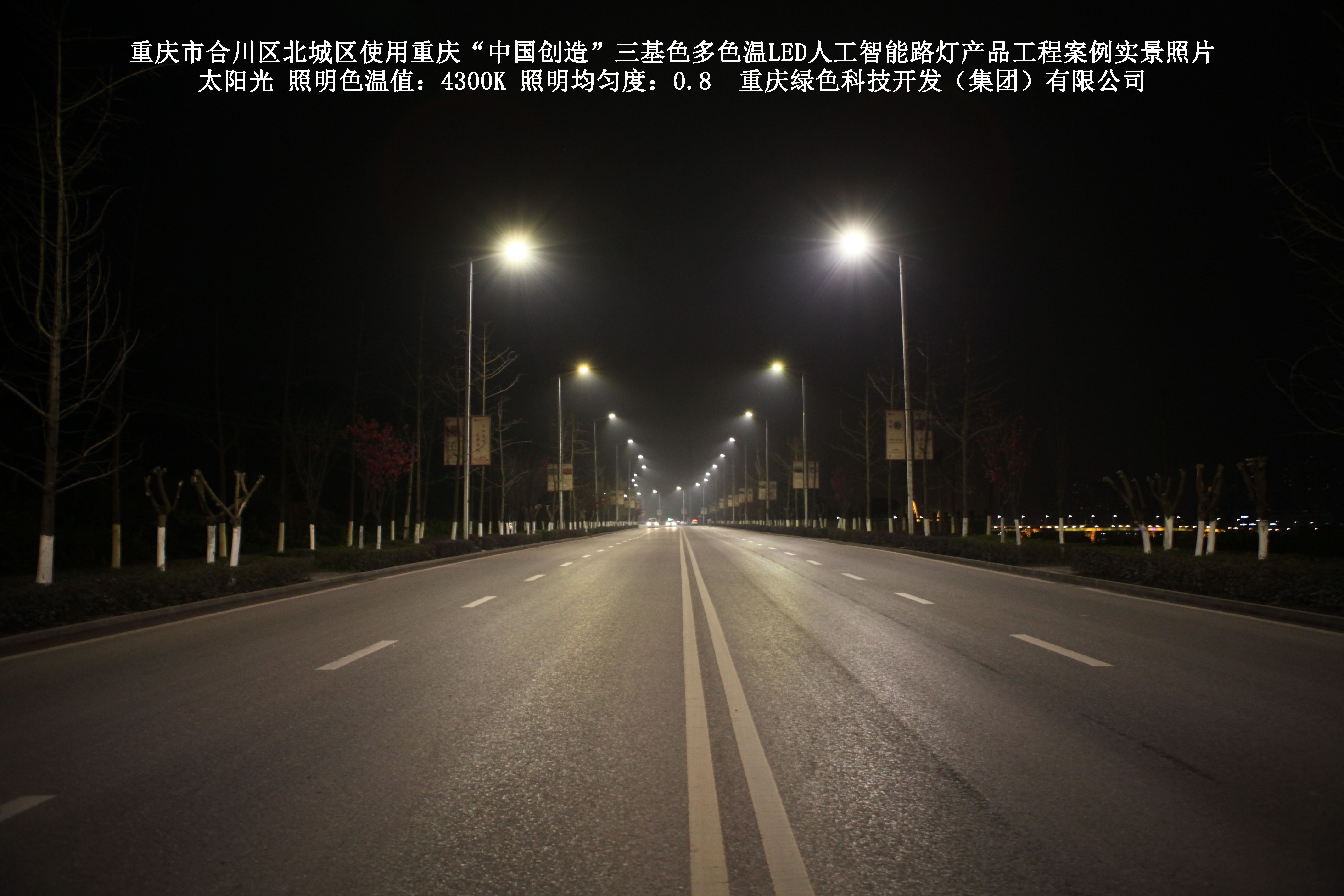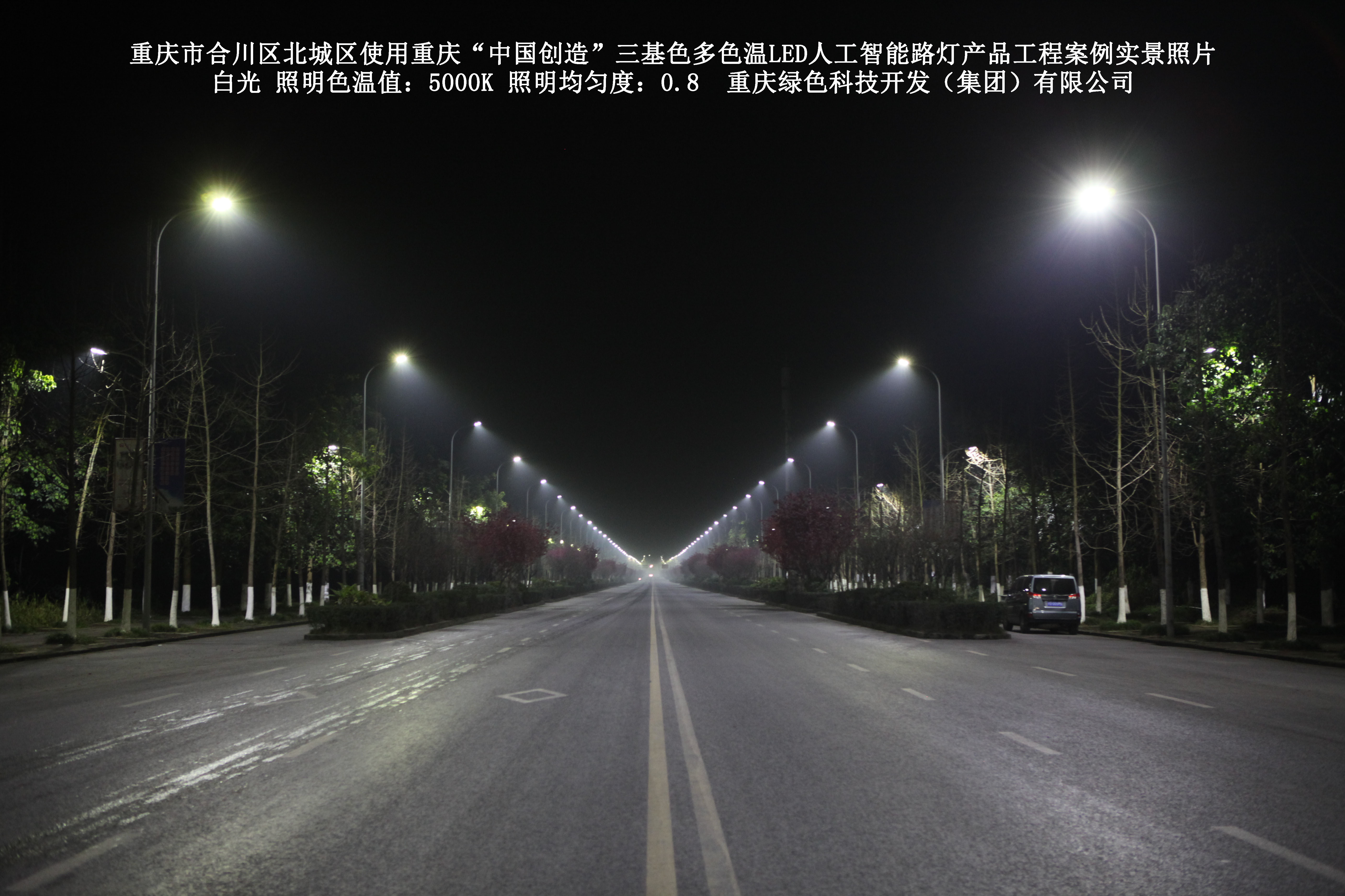 重慶市合川北城區(qū)使用我司研造的重慶“中國創(chuàng)造”三基色多色溫 LED人工智能路燈產(chǎn)品工程案例