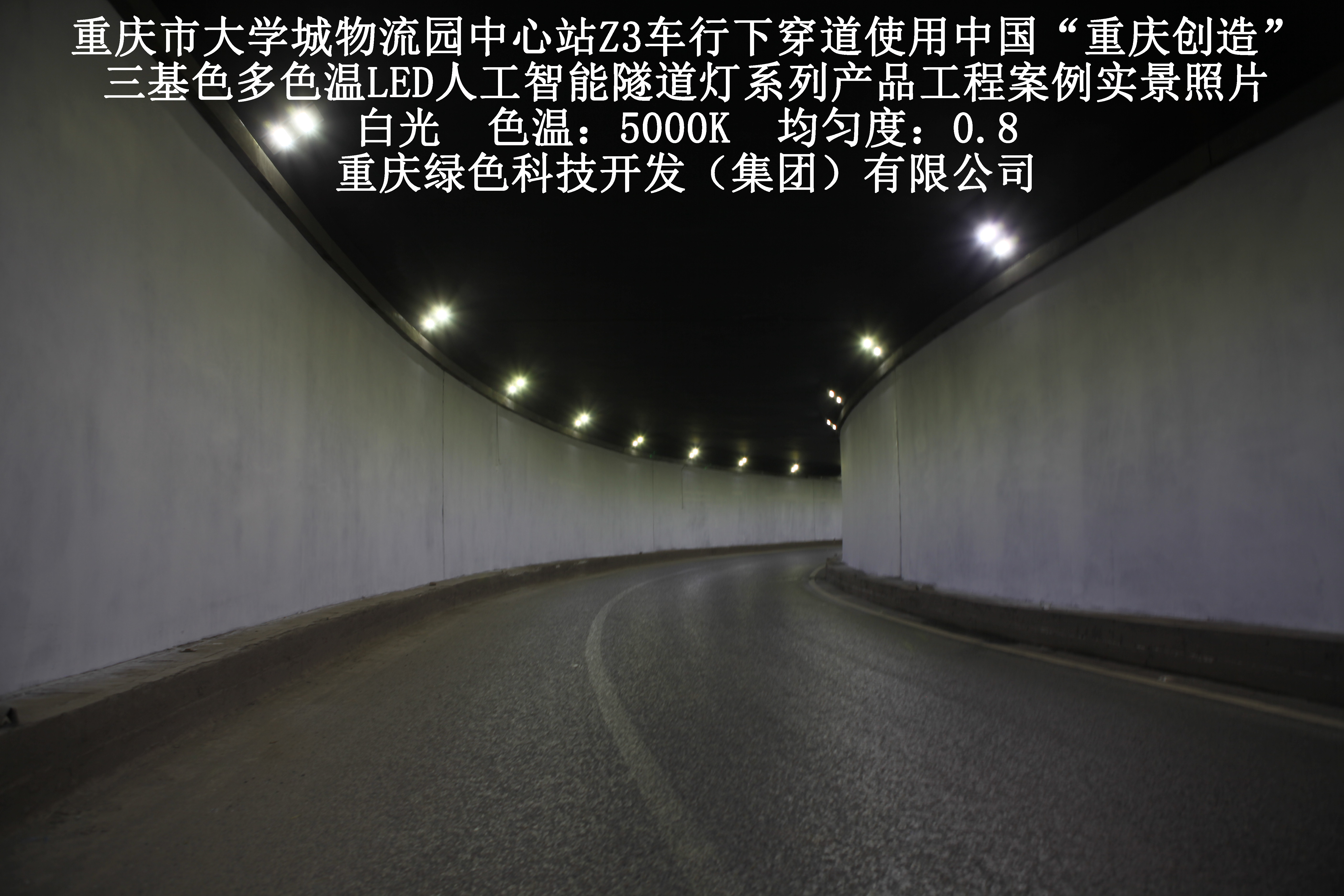 2019年3月,重慶市大學城物流園中心站Z3車行下穿道使用我司自主研發(fā)制造的,重慶“中國創(chuàng)造”三基色多色溫LED人工智能隧道燈系列產(chǎn)品,實施了市政設(shè)施品質(zhì)提升工程(工程案例實景照片附后)。此項目的實施,極大地提高了隧道內(nèi)照明清晰度、燈光均勻度、舒適度及照明安全性,實現(xiàn)了隧道照明系統(tǒng)的智能化管理。