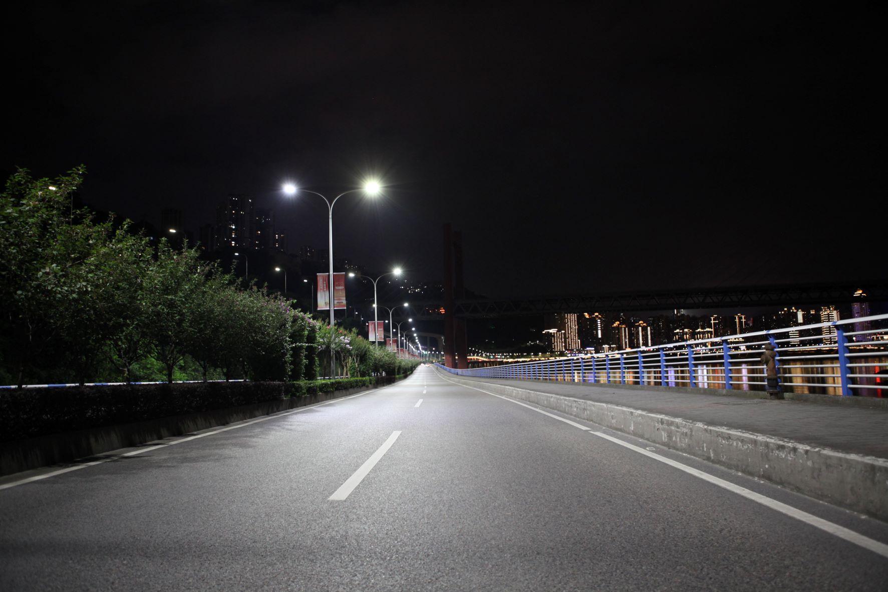重慶嘉濱路使用物聯(lián)網(wǎng)五基色多色溫全光譜LED智慧路燈實施城市照明品質(zhì)提升工程全面竣工提升改造工程
